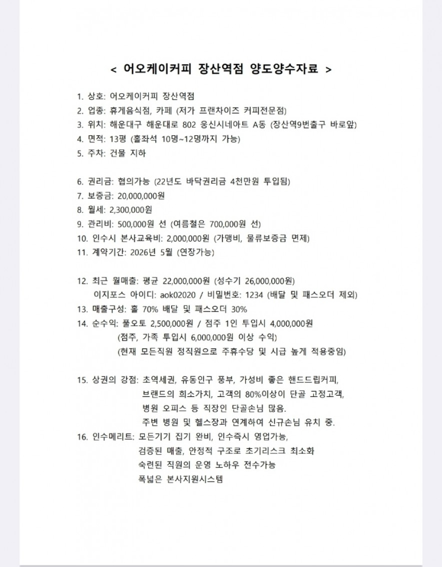 장산역 바로 인근 역새권 유동 많은 자리