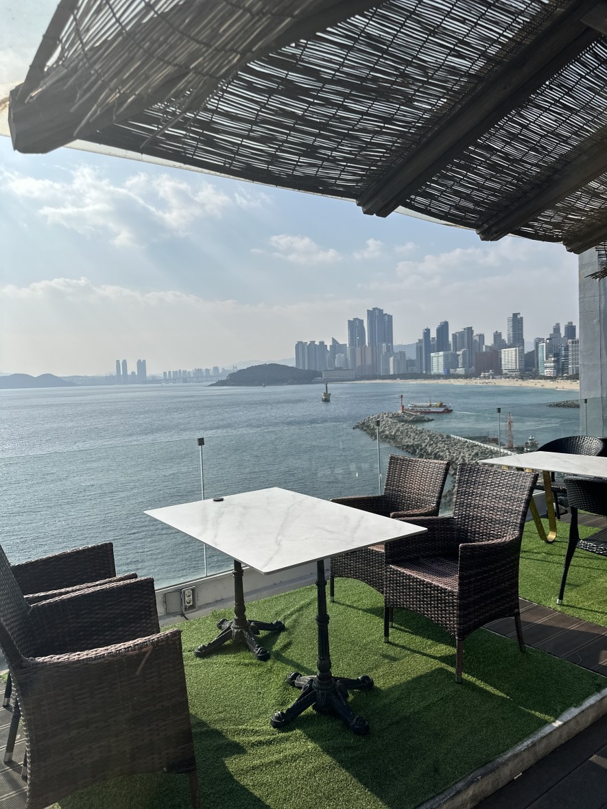 창밖으로 미포 바다가 시원하게 펼쳐지는 뷰로